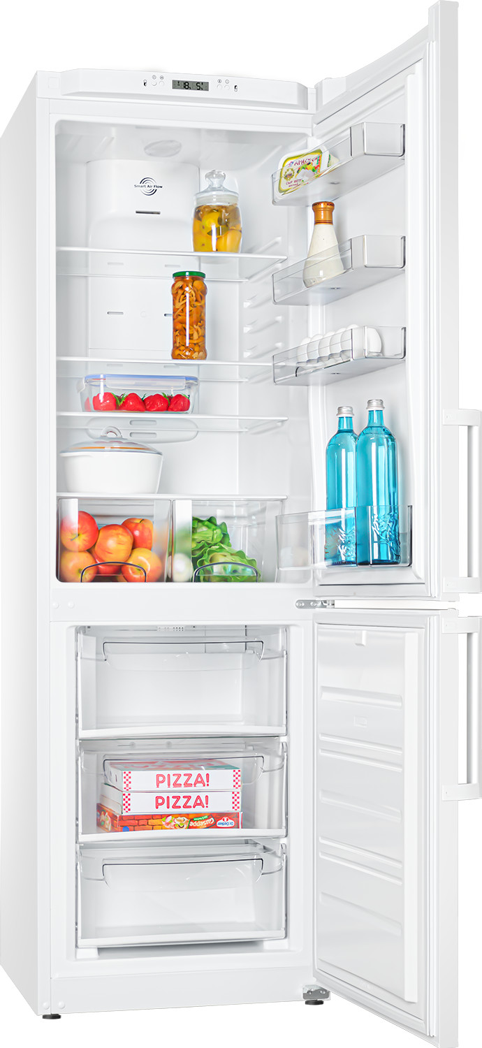 Однокомпрессорные холодильники ATLANT COMFORT+ оснащены автоматической системой оттаивания Full No Frost, которая дает возможность забыть о размораживании холодильника, достаточно провести уборку отделений один раз в год. Такая система основана на принудительной, с помощью вентилятора, циркуляции воздуха, который из морозильного отделения поступает в холодильное отделение и охлаждает его.