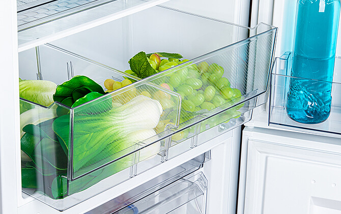 В «Super Fresh Box» скоропортящиеся продукты остаются максимально долго свежими, сохраняя свои вкусовые и питательные свойства. Отделение свежести передвигается по роликовым направляющим.