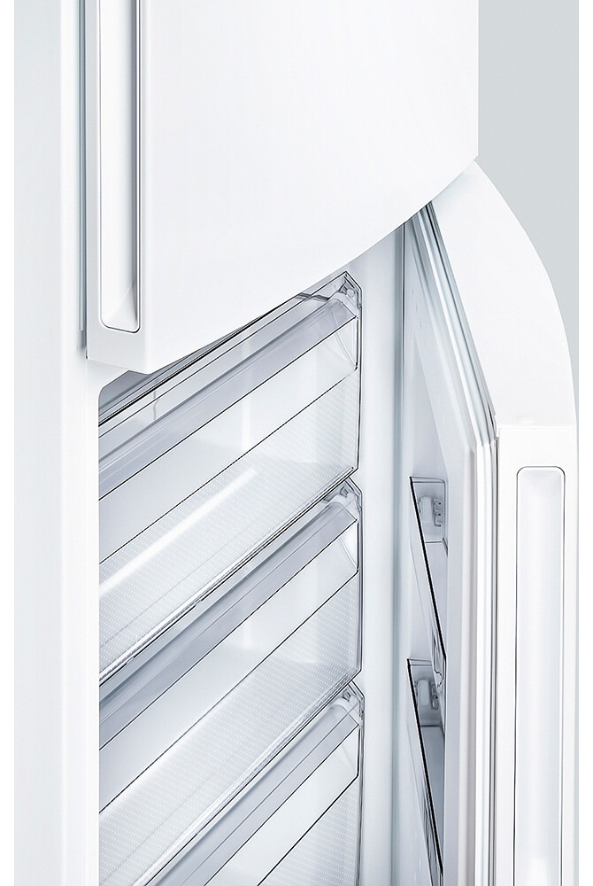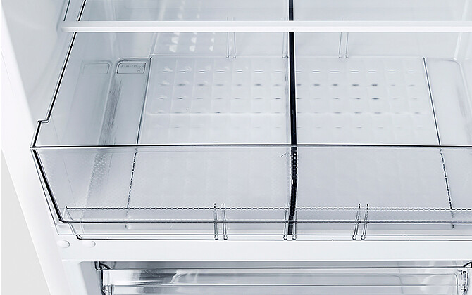 Стандартные корзины можно переставлять по высоте. Есть возможность использовать пространство морозильника без корзин: прутковый испаритель между корзинами выдерживает нагрузку до 20 кг при равномерном распределении.
