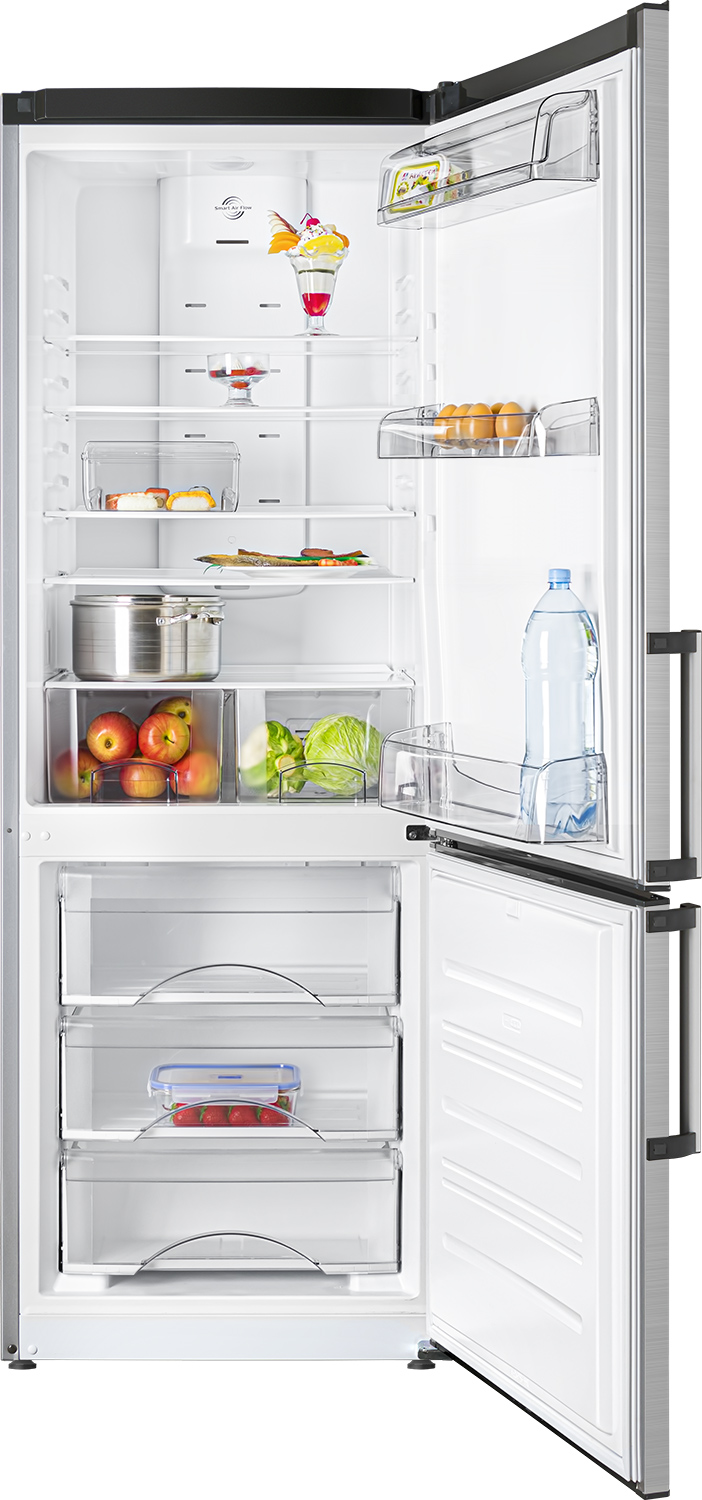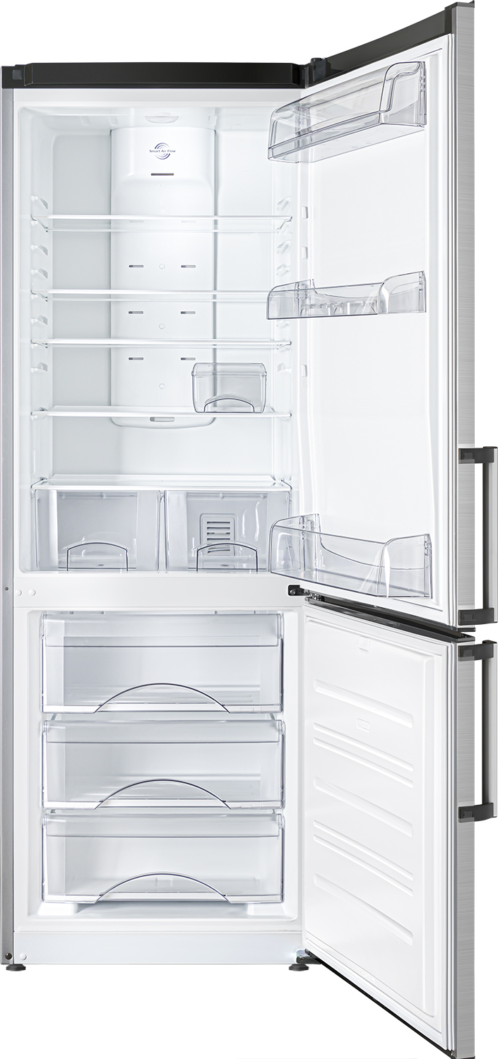 Система охлаждения \Full No Frost" обеспечивает принудительную циркуляцию холодного воздуха в отделениях, а также предотвращает намерзание инея в МО, поэтому нет необходимости размораживать его несколько раз в год.
