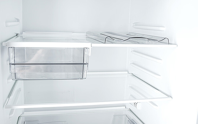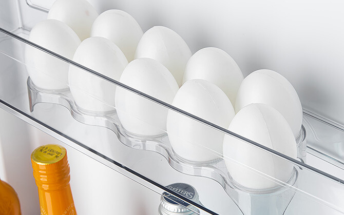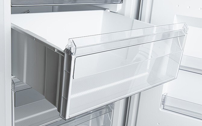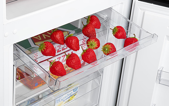 Стандартные корзины можно переставлять по высоте. Есть возможность использовать пространство морозильника без корзин: прутковый испаритель между корзинами выдерживает нагрузку до 20 кг при равномерном распределении.