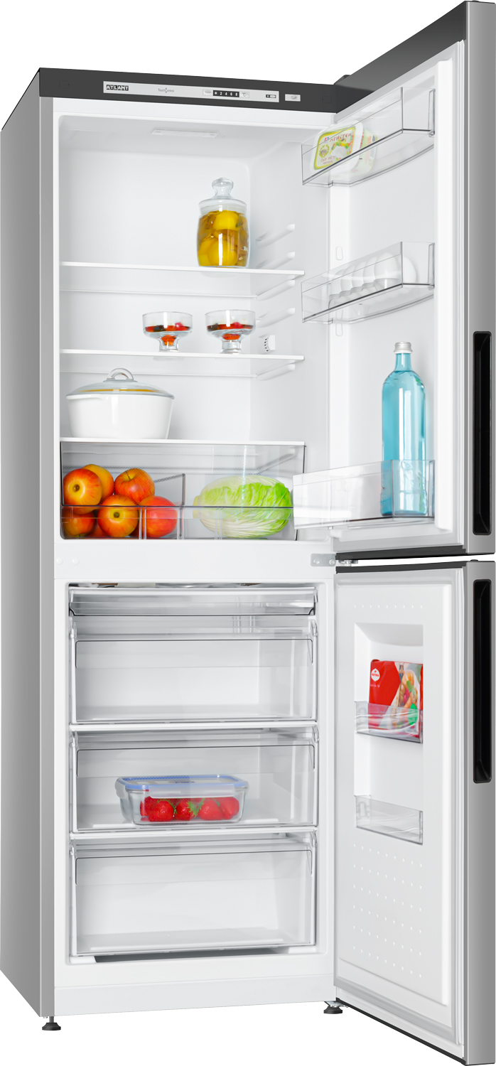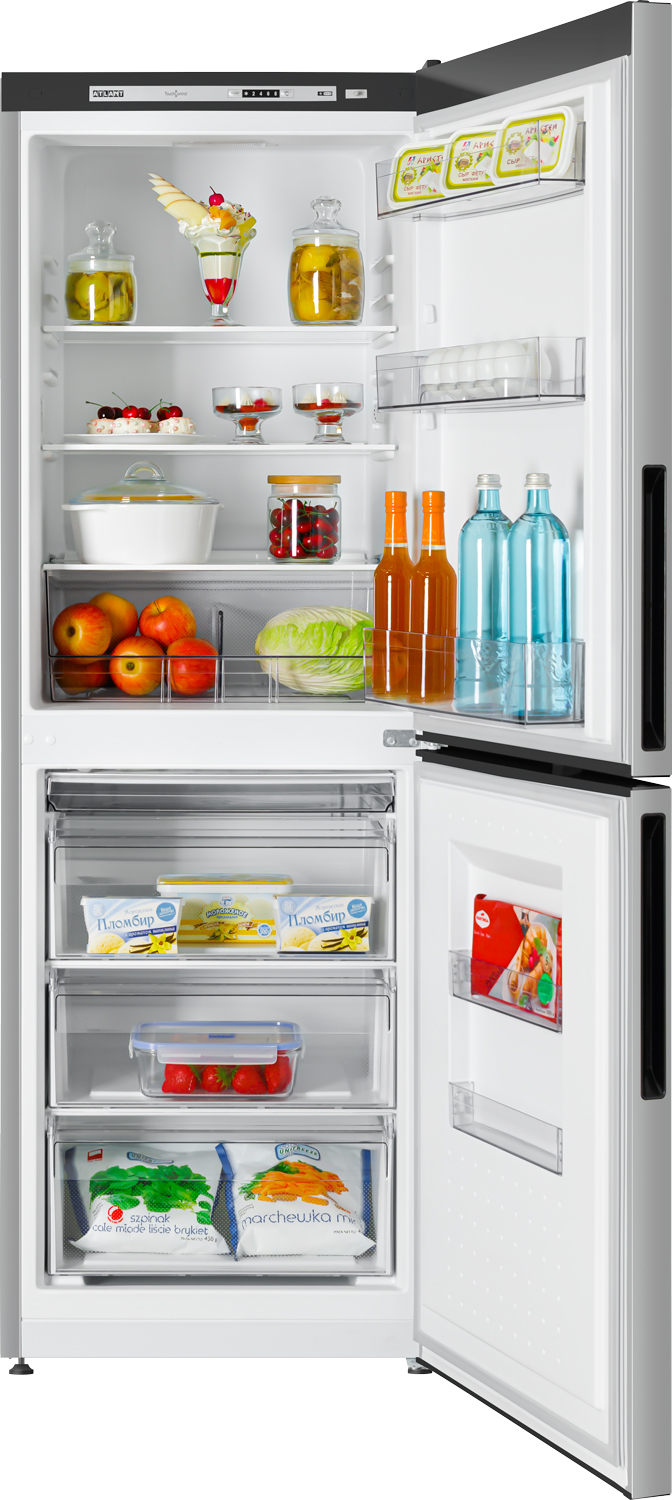 Стандартные корзины можно переставлять по высоте. Есть возможность использовать пространство морозильника без корзин: прутковый испаритель между корзинами выдерживает нагрузку до 20 кг при равномерном распределении.