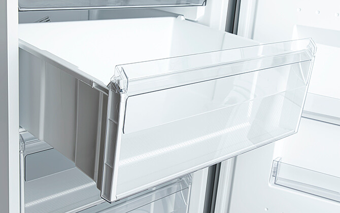 Передние панели всех корзин изготовлены из прозрачного пластика, что обеспечивает хороший обзор всего содержимого без выдвижения корзины