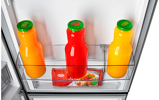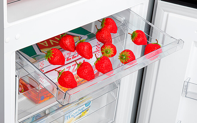 Стандартные корзины можно переставлять по высоте. Есть возможность использовать пространство морозильника без корзин: прутковый испаритель между корзинами выдерживает нагрузку до 20 кг при равномерном распределении.