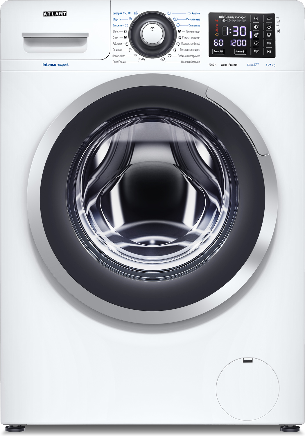 Новая стиральная машина ATLANT серии INTENSE EXPERT имеет уникальный дизайн, который прекрасно дополнит любой интерьер своим внешним видом. С помощью новых сенсорных технологий достаточно легкого касания для выбора функций и программ. Светодиодные индикаторы и сегментный дисплей машины размещены на панели управления под небольшим углом, что облегчает визуальное восприятие отображаемой информации о работе машины. Благодаря интеллектуальным программам она не только интуитивно понятна в управлении, но и обеспечивает превосходные результаты стирки при низком потреблении воды и электроэнергии. Кроме того, действует увеличенная гарантия 5 лет на двигатель.