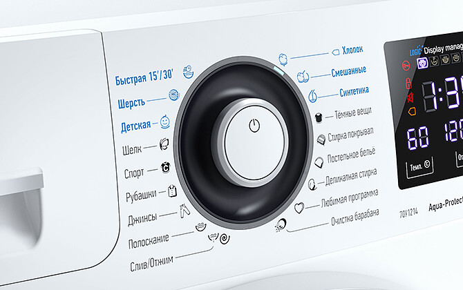 Если вещи не очень грязные, можно откорректировать программу, включив дополнительную функцию «eco», чтобы стирка была с меньшим расходом времени и электроэнергии.