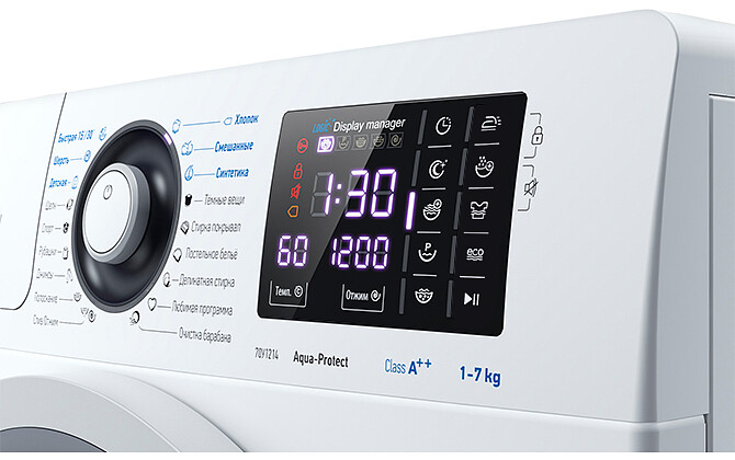 Загрузив машину и выбрав программу, можно подготовиться к стирке заранее — за 1–24 часа, чтобы постирать в удобное или выгодное время, когда тарифы на электроэнергию снижены.