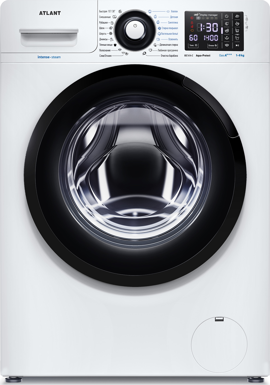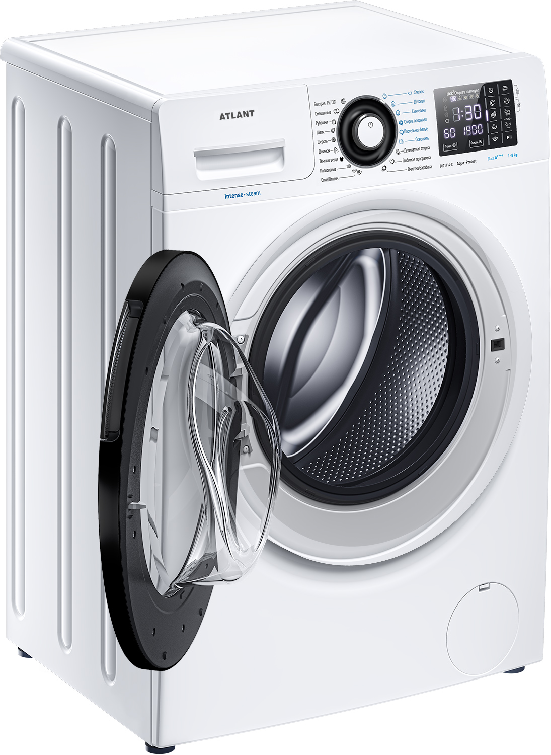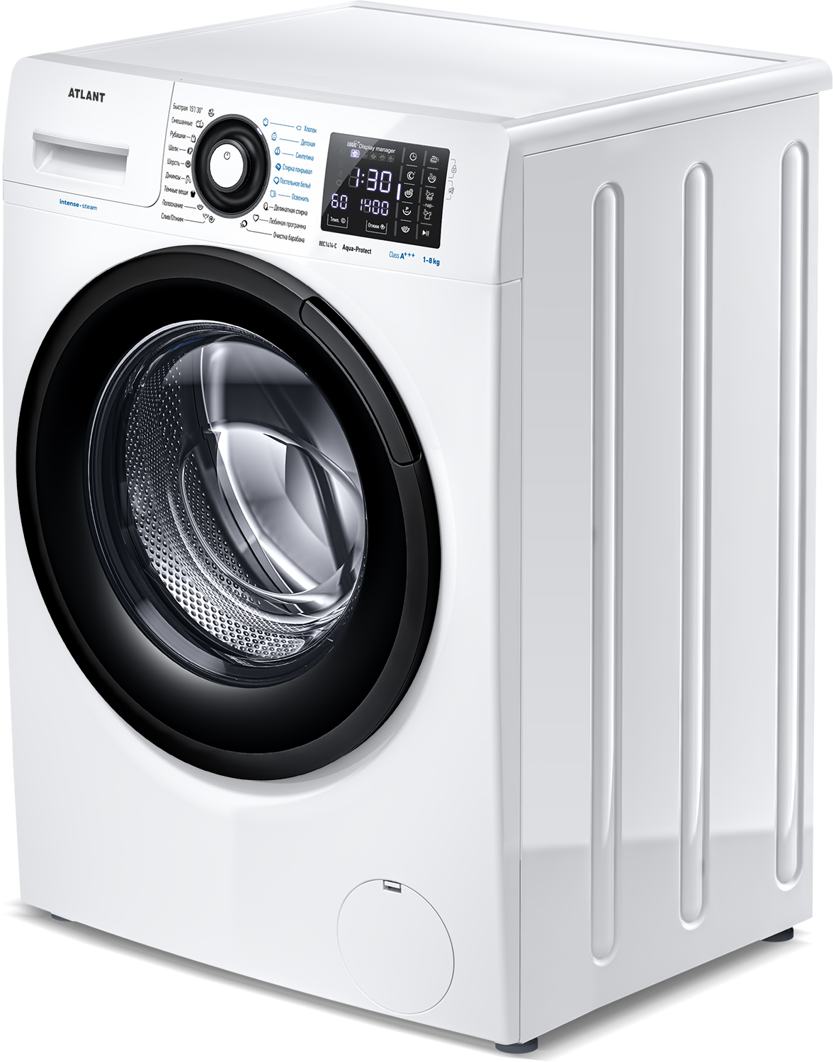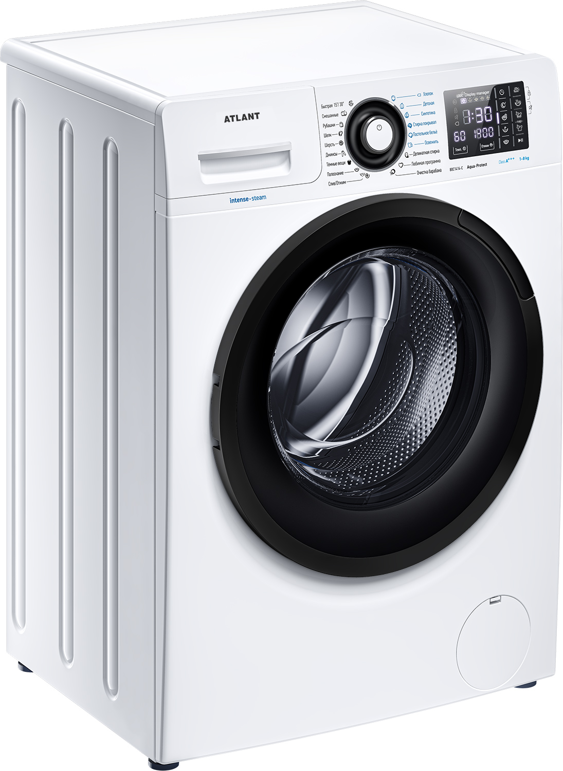 Новая стиральная машина ATLANT серии INTENSE EXPERT имеет уникальный дизайн, который прекрасно дополнит любой интерьер своим внешним видом. С помощью новых сенсорных технологий достаточно легкого касания для выбора функций и программ. Светодиодные индикаторы и сегментный дисплей машины размещены на панели управления под небольшим углом, что облегчает визуальное восприятие отображаемой информации о работе машины. Благодаря интеллектуальным программам она не только интуитивно понятна в управлении, но и обеспечивает превосходные результаты стирки при низком потреблении воды и электроэнергии. Кроме того, действует увеличенная гарантия 5 лет на двигатель.