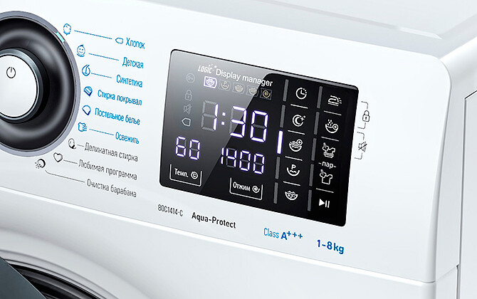 Если вещи не очень грязные, можно откорректировать программу, включив дополнительную функцию «eco», чтобы стирка была с меньшим расходом времени и электроэнергии.