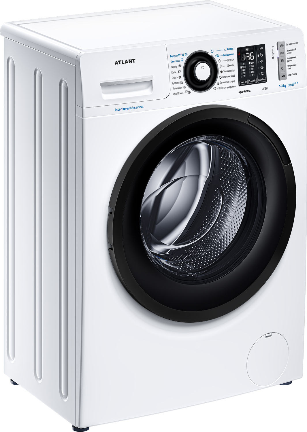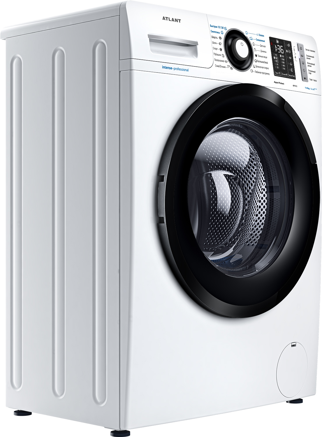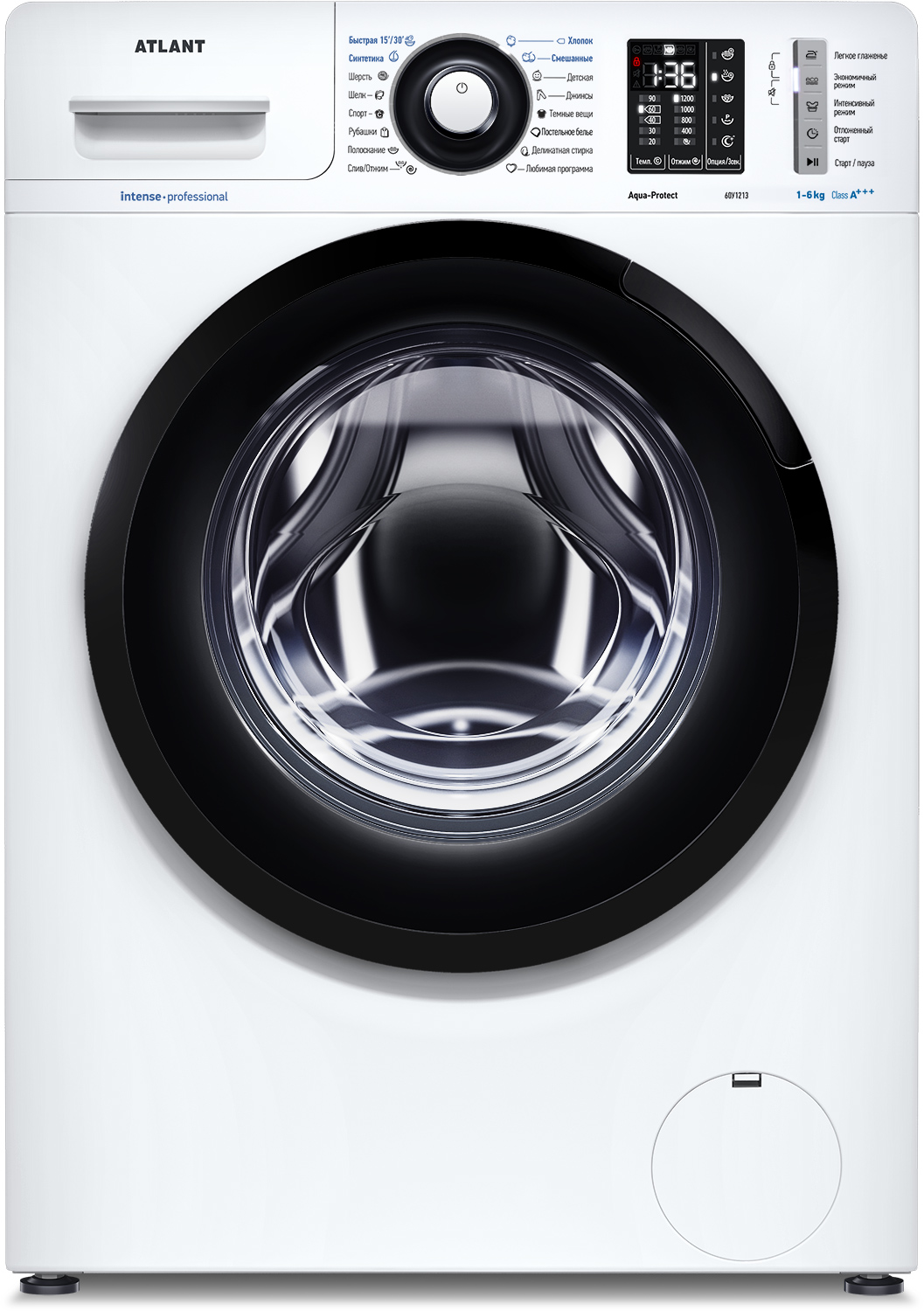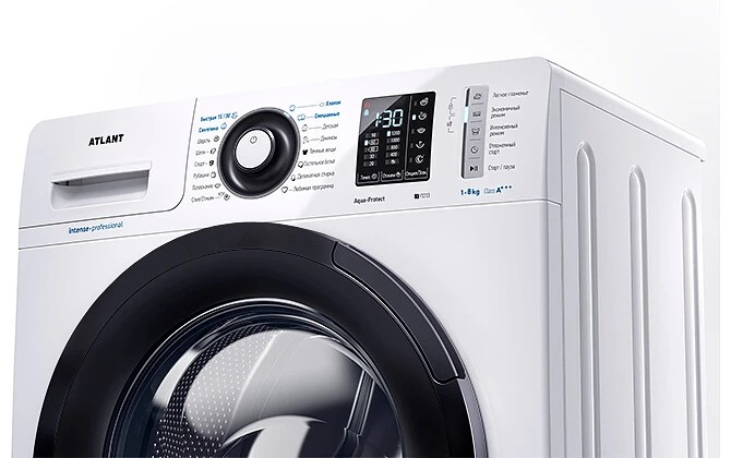 Новая стиральная машина ATLANT серии INTENSE PROFESSIONAL имеет уникальный дизайн, который прекрасно дополнит любой интерьер своим внешним видом. С помощью новых сенсорных технологий достаточно легкого касания для выбора функций и программ. Светодиодные индикаторы и сегментный дисплей машины размещены на панели управления под небольшим углом, что облегчает визуальное восприятие отображаемой информации о работе машины. Благодаря интеллектуальным программам она не только интуитивно понятна в управлении, но и обеспечивает превосходные результаты стирки при низком потреблении воды и электроэнергии. Кроме того, действует увеличенная гарантия 5 лет на двигатель.