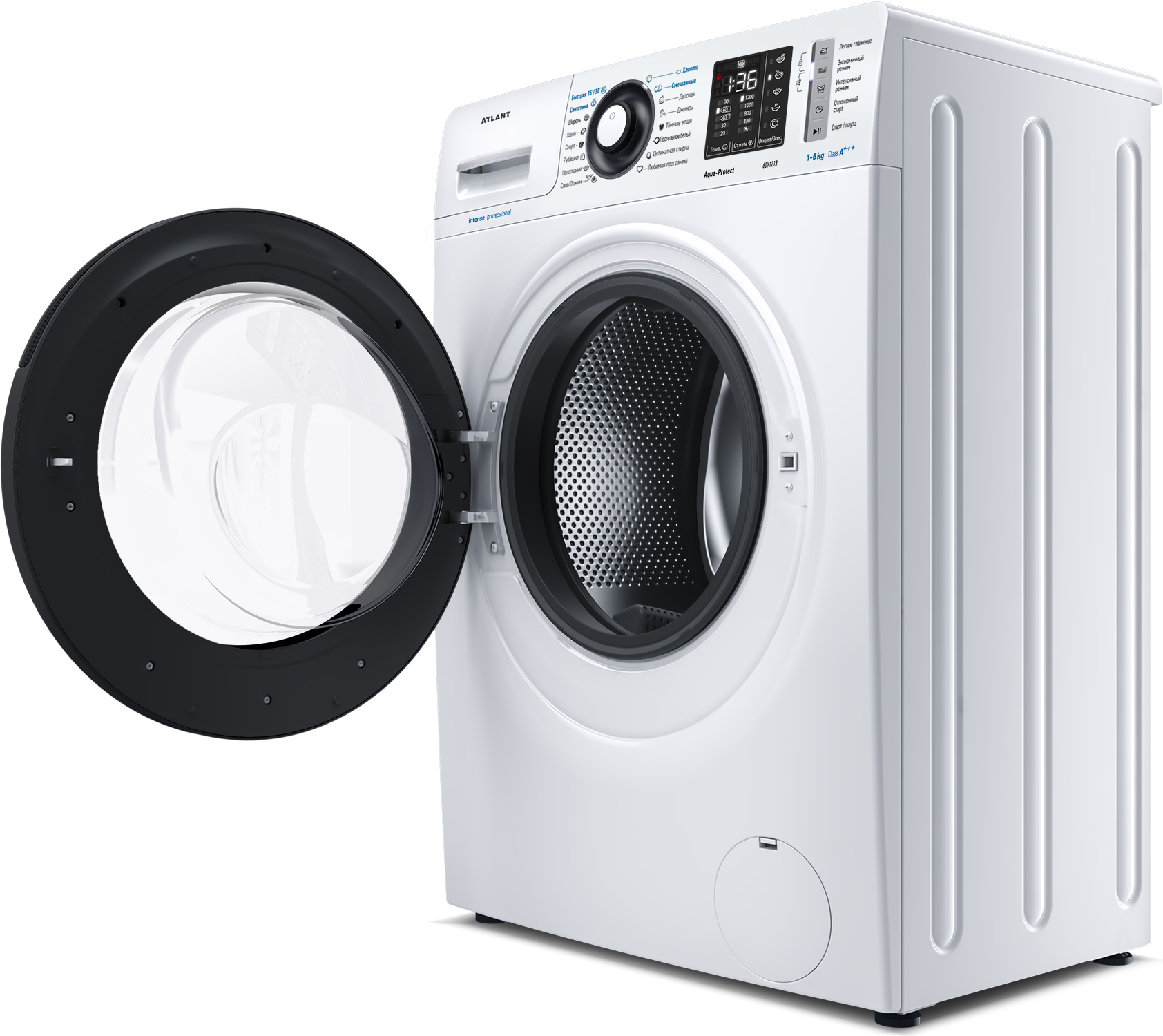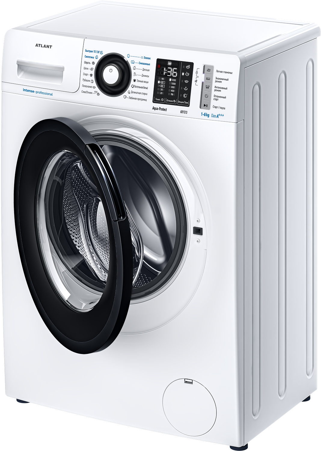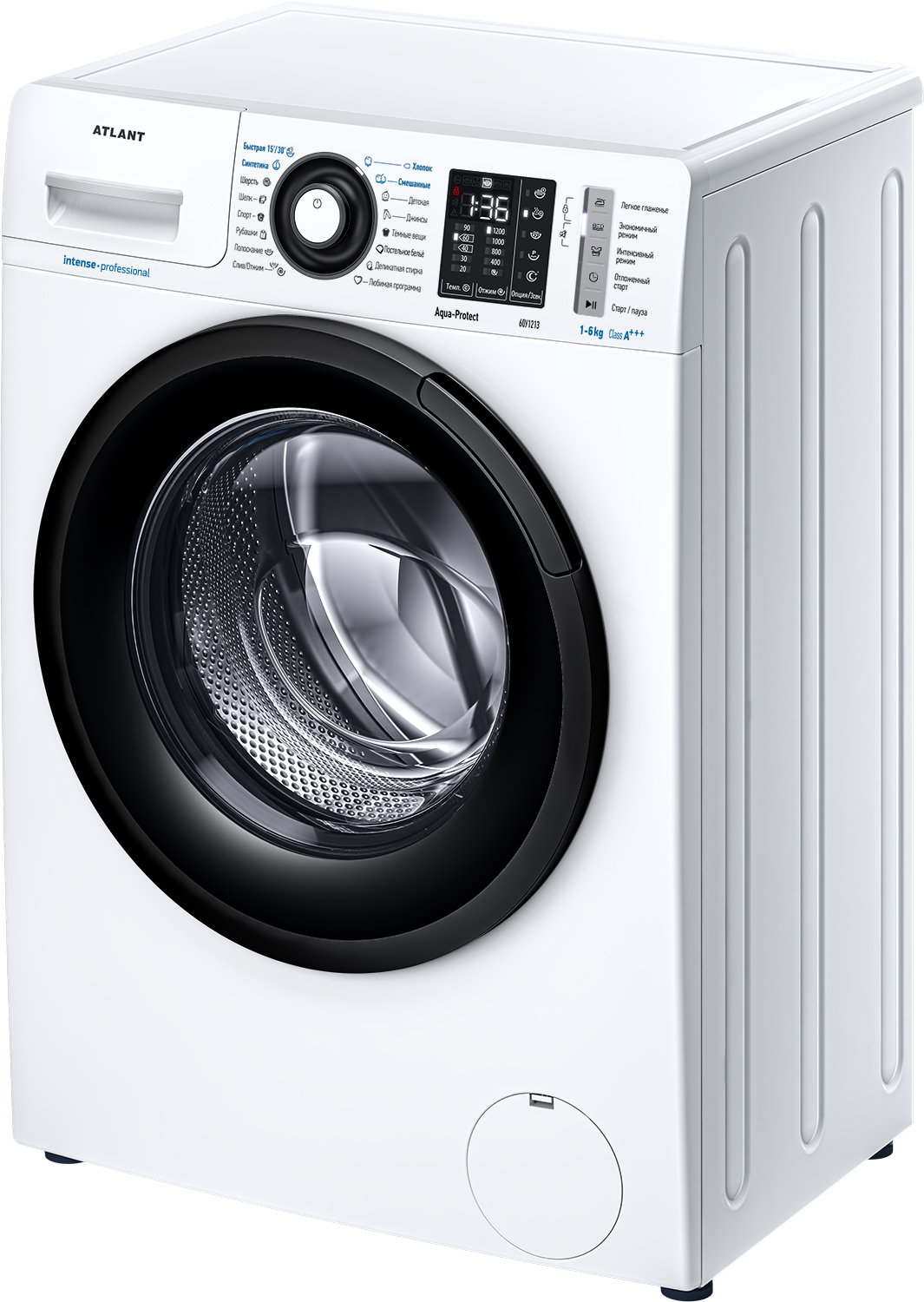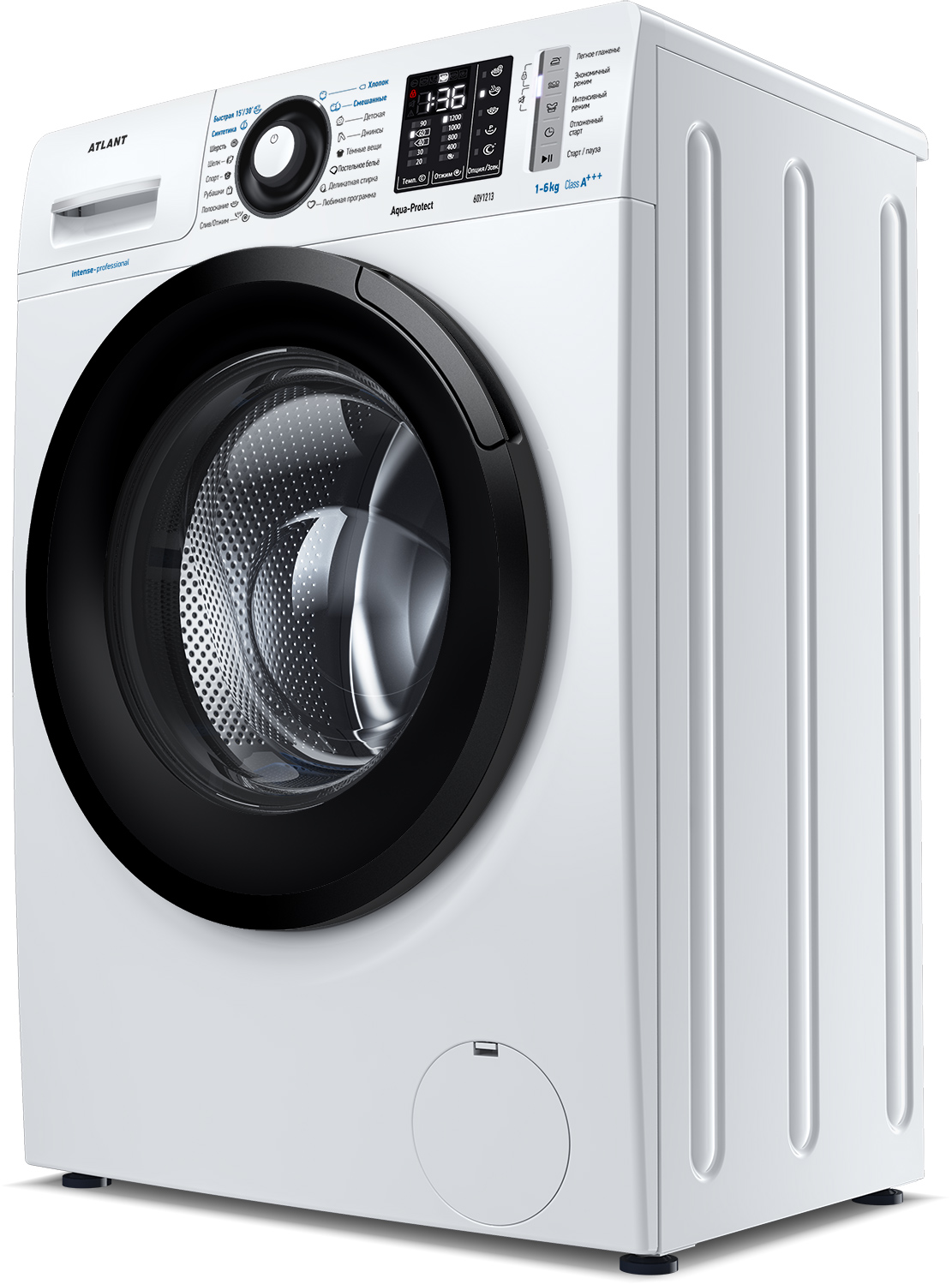 Новая стиральная машина ATLANT серии INTENSE PROFESSIONAL имеет уникальный дизайн, который прекрасно дополнит любой интерьер своим внешним видом. С помощью новых сенсорных технологий достаточно легкого касания для выбора функций и программ. Светодиодные индикаторы и сегментный дисплей машины размещены на панели управления под небольшим углом, что облегчает визуальное восприятие отображаемой информации о работе машины. Благодаря интеллектуальным программам она не только интуитивно понятна в управлении, но и обеспечивает превосходные результаты стирки при низком потреблении воды и электроэнергии. Кроме того, действует увеличенная гарантия 5 лет на двигатель.