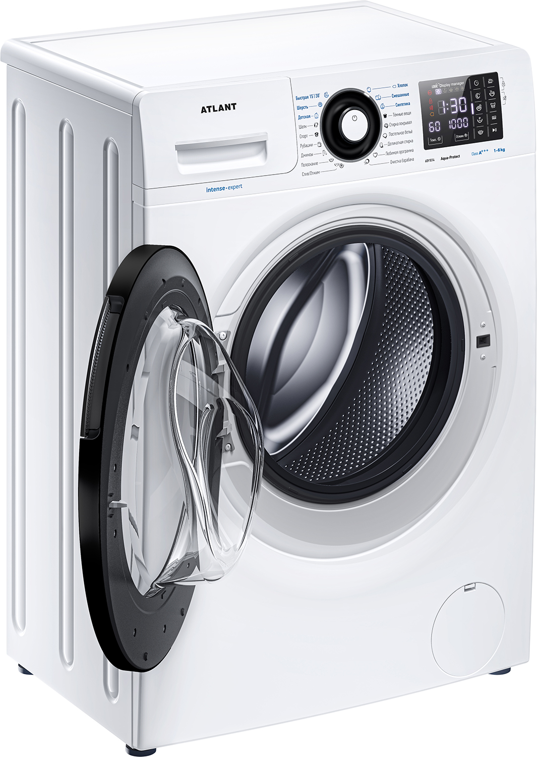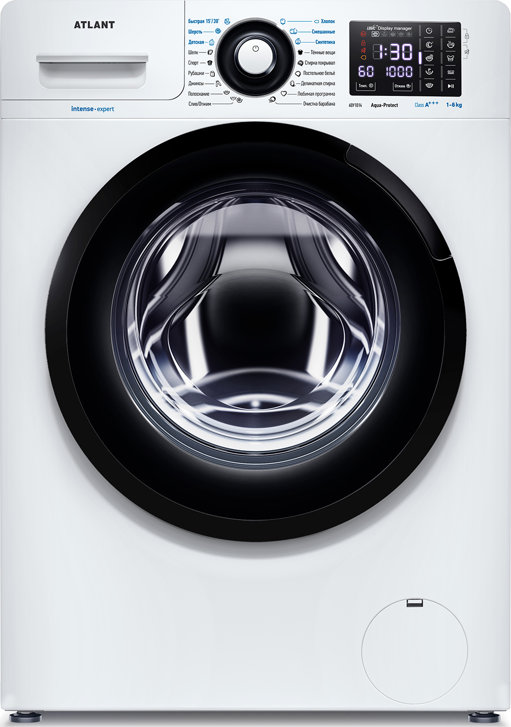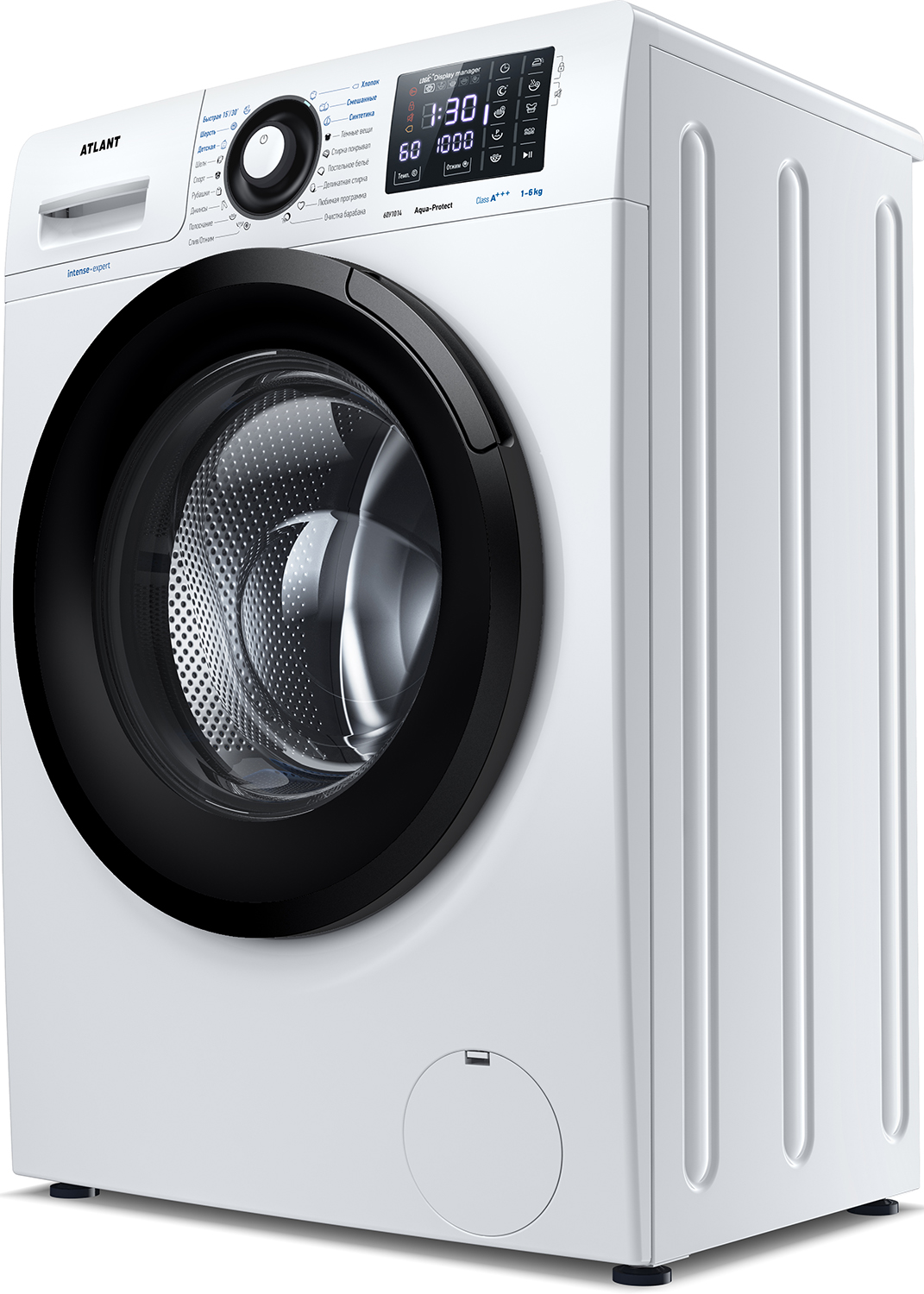 Новая стиральная машина ATLANT серии INTENSE PROFESSIONAL имеет уникальный дизайн, который прекрасно дополнит любой интерьер своим внешним видом. С помощью новых сенсорных технологий достаточно легкого касания для выбора функций и программ. Светодиодные индикаторы и сегментный дисплей машины размещены на панели управления под небольшим углом, что облегчает визуальное восприятие отображаемой информации о работе машины. Благодаря интеллектуальным программам она не только интуитивно понятна в управлении, но и обеспечивает превосходные результаты стирки при низком потреблении воды и электроэнергии.